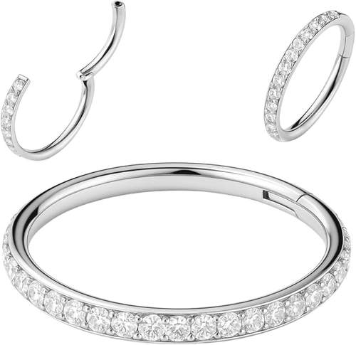 Elegant Embellished Silver-Toned Clicker Hoop Rings